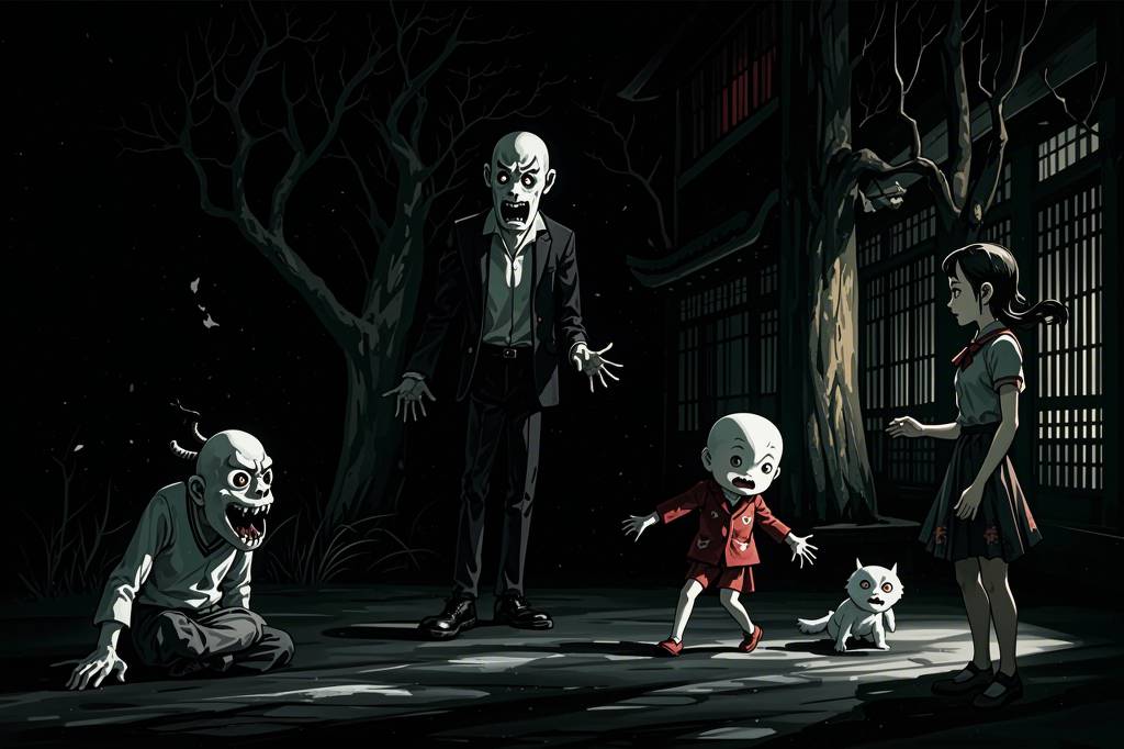 中国,鬼怪,荒诞,电影质感,恐怖氛围,暗黑风格,惊悚,吓人,诡异,阴暗,伊藤润二,超现实的风格,随机场景,电影画质,超清晰(93)