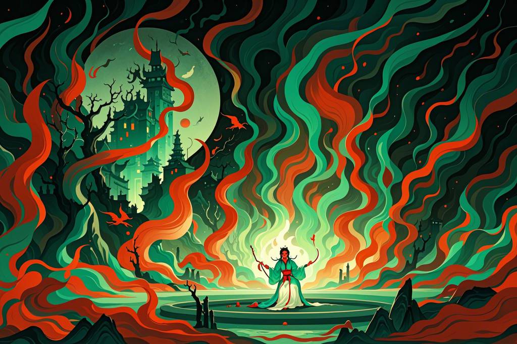 中国,鬼怪,诡异,阴暗,超现实的风格,超真实图像,逼真细节,随机场景(20)