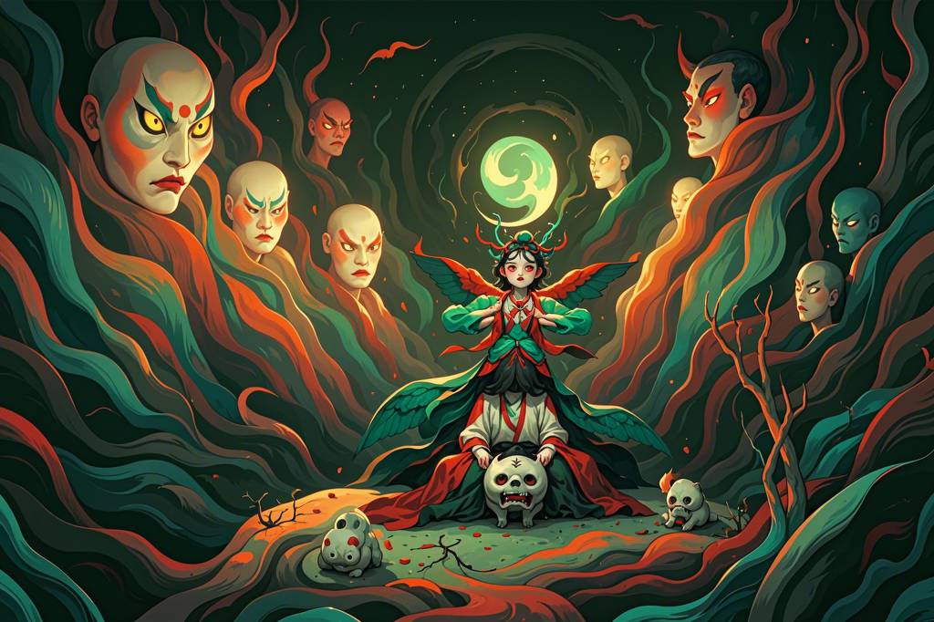 中国,鬼怪,诡异,阴暗,超现实的风格,超真实图像,逼真细节,随机场景(34)