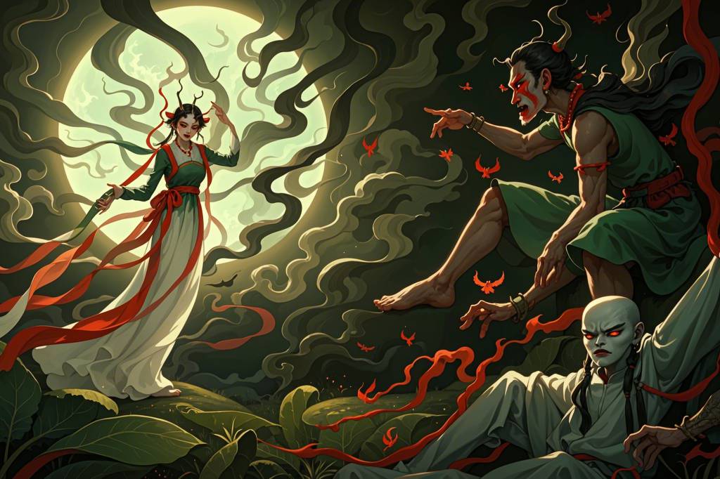 中国,鬼怪,诡异,阴暗,超现实的风格,超真实图像,逼真细节,随机场景(5)