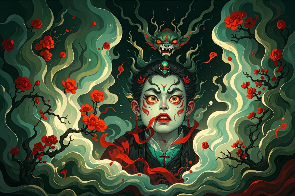 中国,鬼怪,诡异,阴暗,超现实的风格,超真实图像,逼真细节,随机场景(74)
