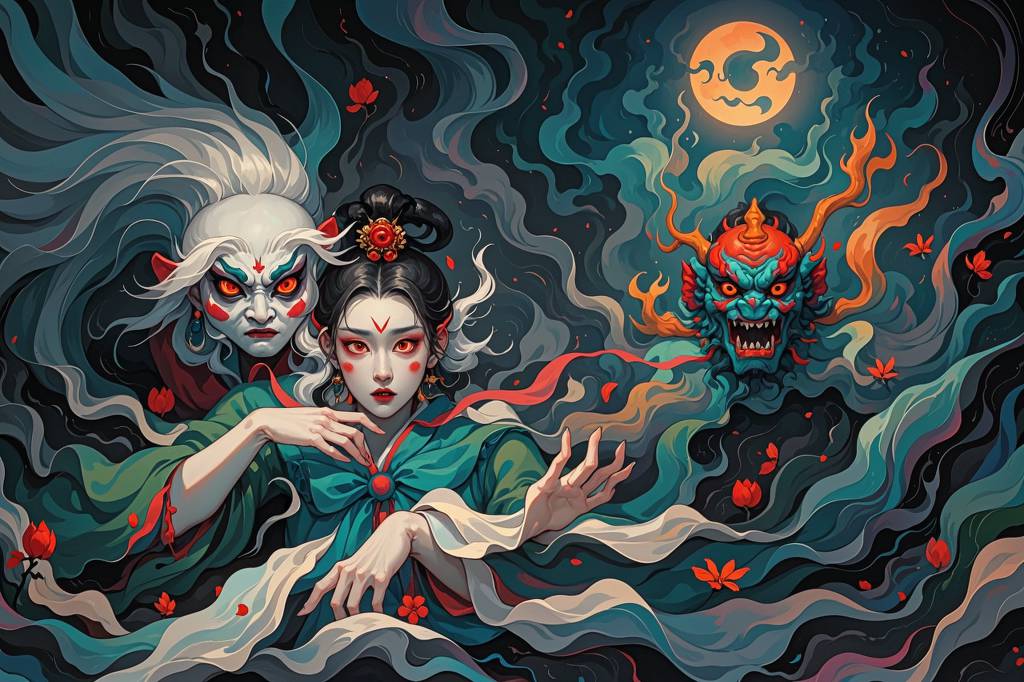中国,鬼怪,诡异,阴暗,超现实的风格,超真实图像,逼真细节,随机场景(97)