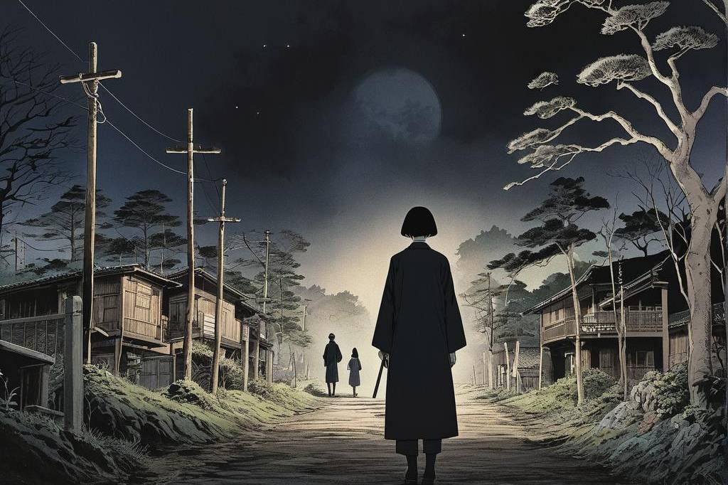 神秘、荒诞、恐怖氛围,包含惊悚、诡异元素,并借鉴伊藤润二风格与哥特式风格,多变场景(10) png