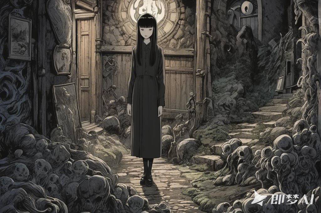 神秘、荒诞、恐怖氛围,包含惊悚、诡异元素,并借鉴伊藤润二风格与哥特式风格,多变场景(13) png
