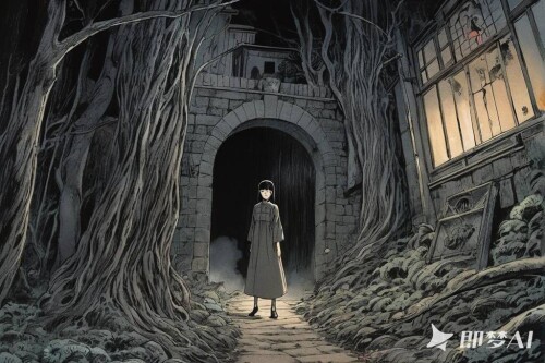 神秘、荒诞、恐怖氛围,包含惊悚、诡异元素,并借鉴伊藤润二风格与哥特式风格,多变场景(16) png(1)(1)
