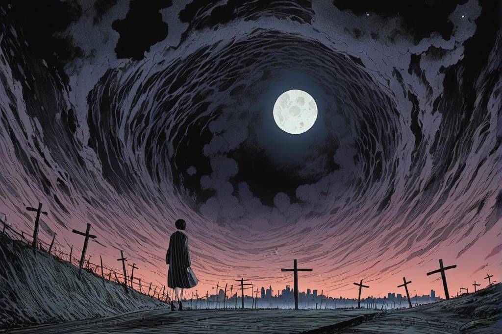 神秘、荒诞、恐怖氛围,包含惊悚、诡异元素,并借鉴伊藤润二风格与哥特式风格,多变场景(31) png(1)