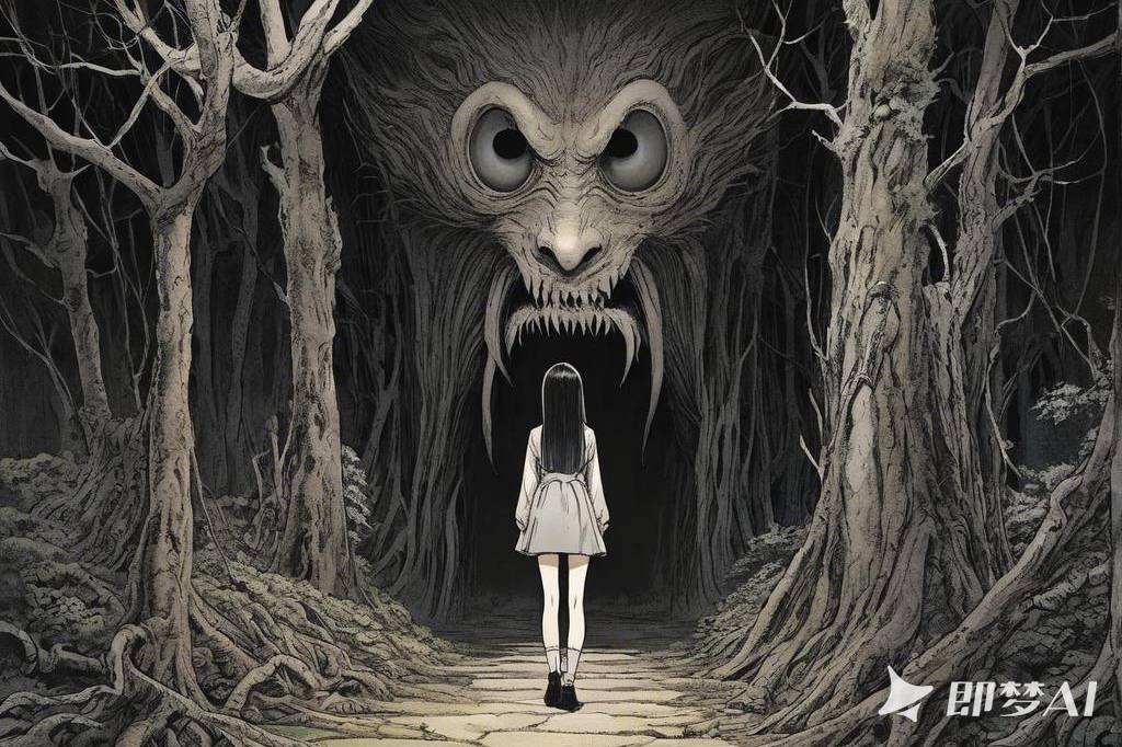 神秘、荒诞、恐怖氛围,包含惊悚、诡异元素,并借鉴伊藤润二风格与哥特式风格,多变场景(35) png(1)