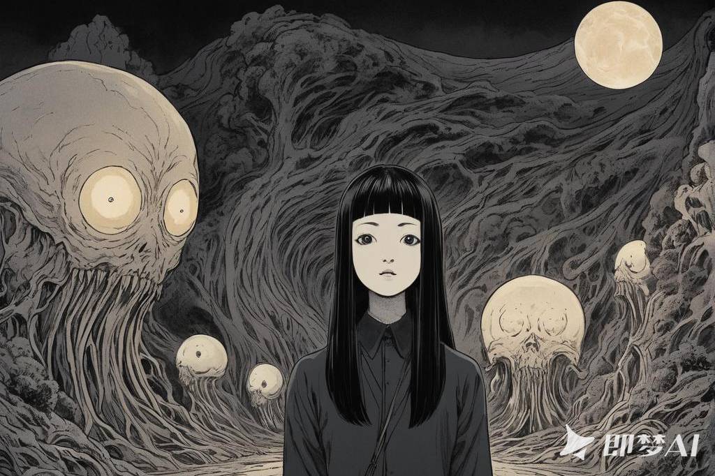 神秘、荒诞、恐怖氛围,包含惊悚、诡异元素,并借鉴伊藤润二风格与哥特式风格,多变场景(36) png