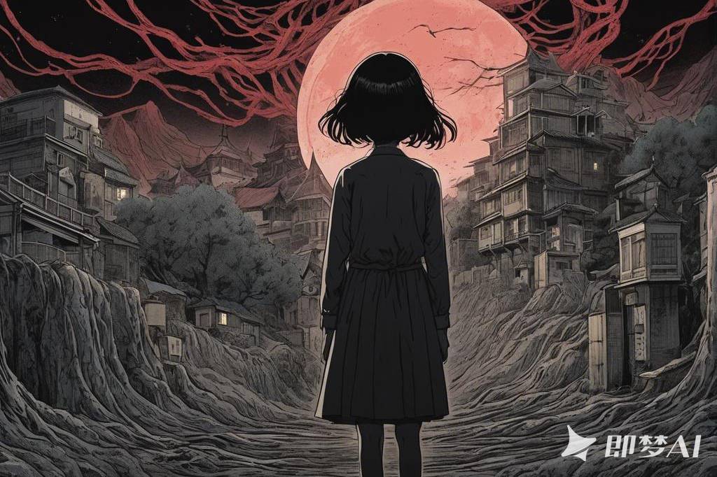 神秘、荒诞、恐怖氛围,包含惊悚、诡异元素,并借鉴伊藤润二风格与哥特式风格,多变场景(37) png(1)