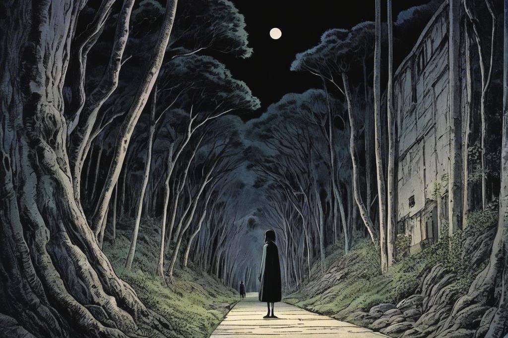 神秘、荒诞、恐怖氛围,包含惊悚、诡异元素,并借鉴伊藤润二风格与哥特式风格,多变场景(5) png(1)