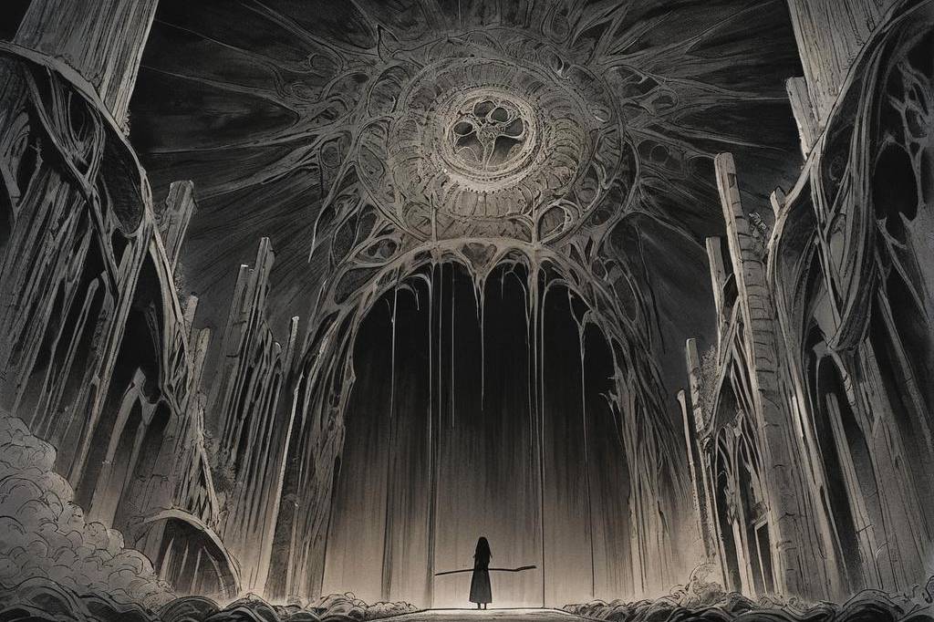 神秘、荒诞、恐怖氛围,包含惊悚、诡异元素,并借鉴伊藤润二风格与哥特式风格,多变场景(51) png(1)