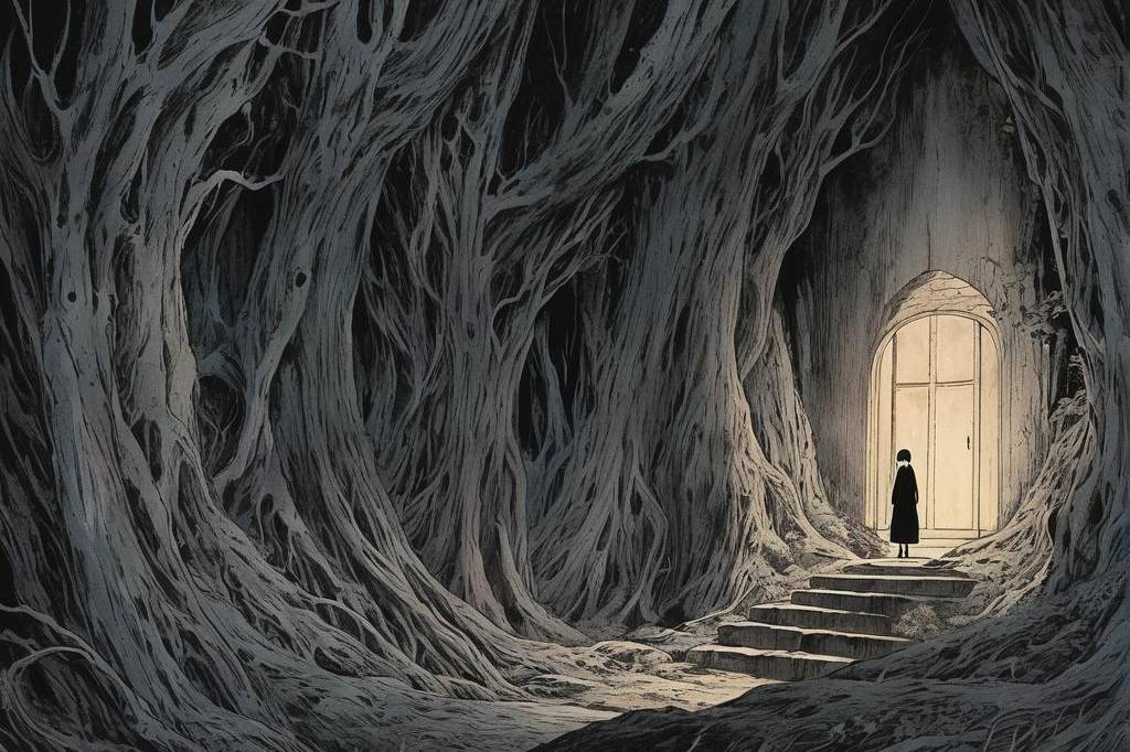 神秘、荒诞、恐怖氛围,包含惊悚、诡异元素,并借鉴伊藤润二风格与哥特式风格,多变场景(56) png(1)