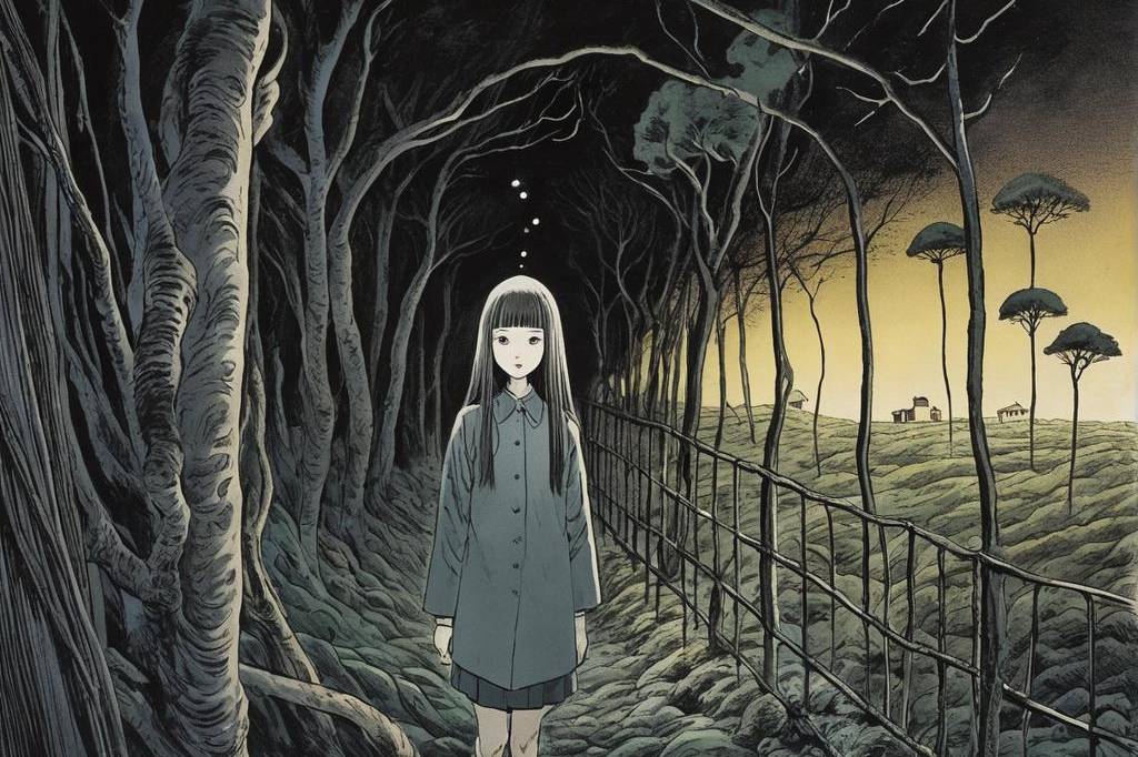 神秘、荒诞、恐怖氛围,包含惊悚、诡异元素,并借鉴伊藤润二风格与哥特式风格,多变场景(65) png