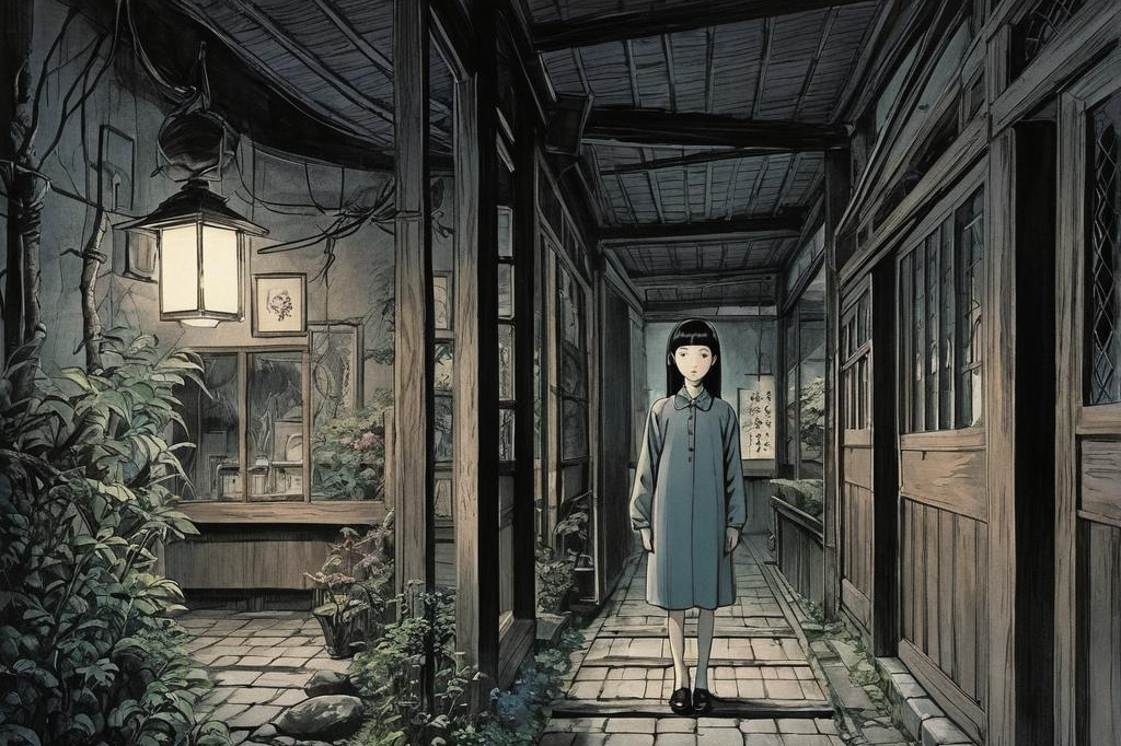 神秘、荒诞、恐怖氛围,包含惊悚、诡异元素,并借鉴伊藤润二风格与哥特式风格,多变场景(7)