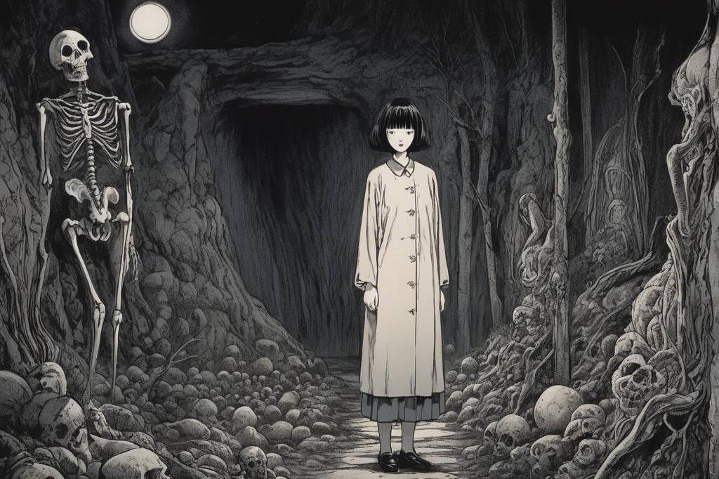 神秘、荒诞、恐怖氛围,包含惊悚、诡异元素,并借鉴伊藤润二风格与哥特式风格,多变场景(75) png