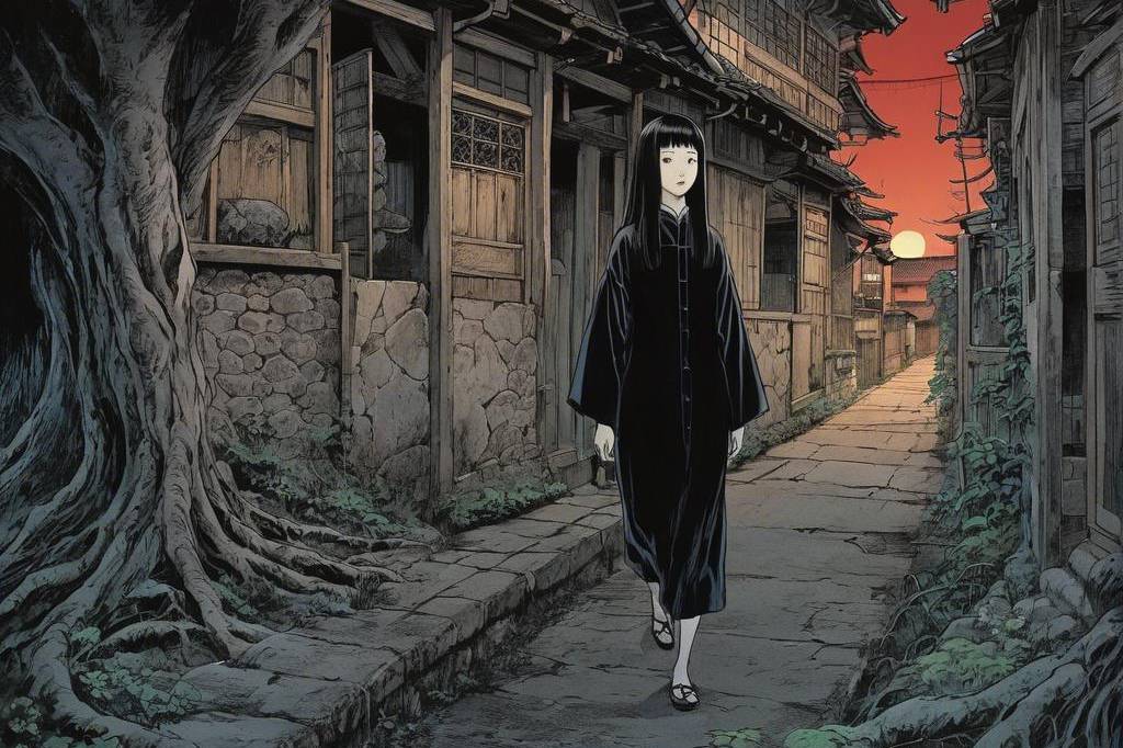 神秘、荒诞、恐怖氛围,包含惊悚、诡异元素,并借鉴伊藤润二风格与哥特式风格,多变场景(76) png(1)(1)