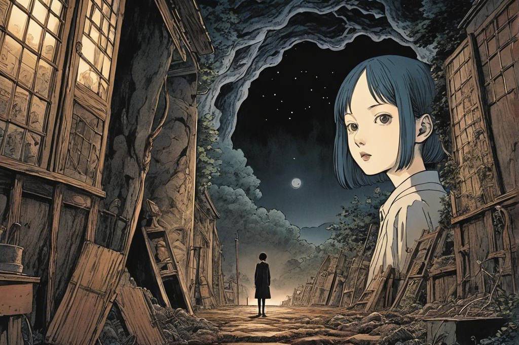 神秘、荒诞、恐怖氛围,包含惊悚、诡异元素,并借鉴伊藤润二风格与哥特式风格,多变场景(78) png