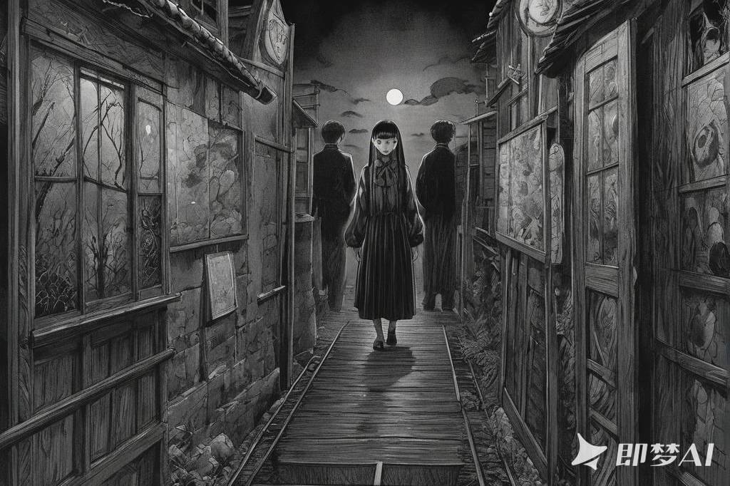 神秘、荒诞、恐怖氛围,包含惊悚、诡异元素,并借鉴伊藤润二风格与哥特式风格,多变场景(79) png(1)(1)(1)