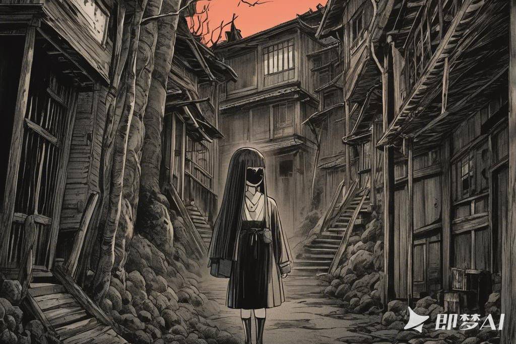 神秘、荒诞、恐怖氛围,包含惊悚、诡异元素,并借鉴伊藤润二风格与哥特式风格,多变场景(79) png(1)