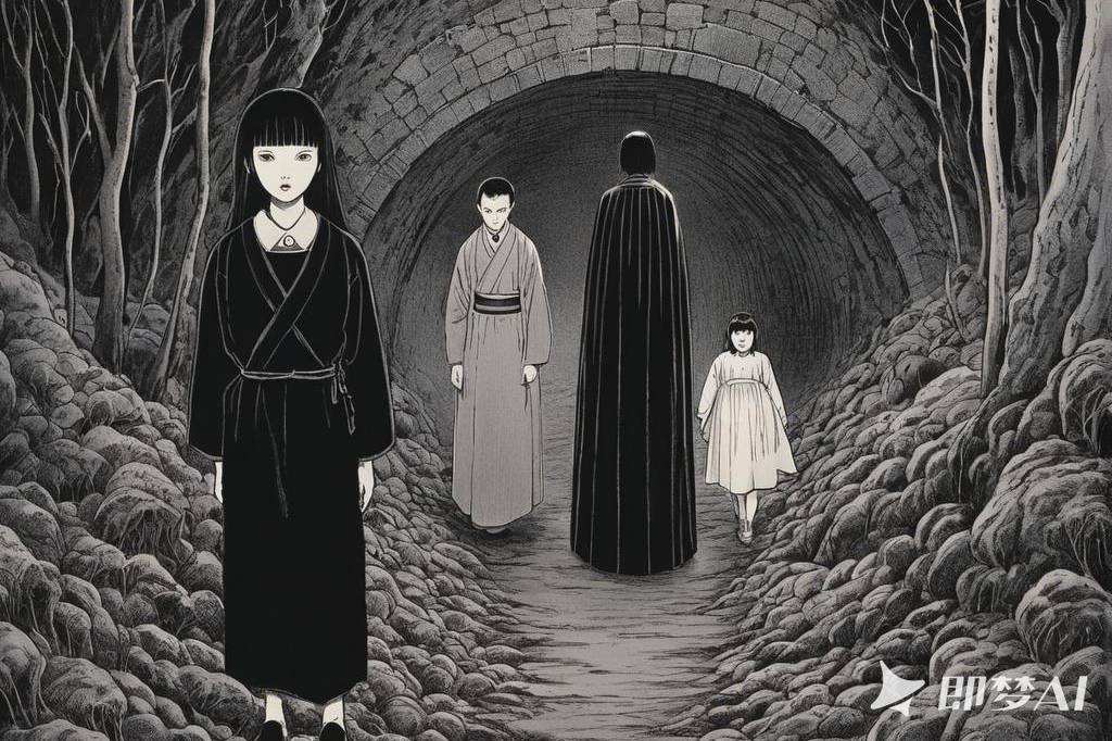 神秘、荒诞、恐怖氛围,包含惊悚、诡异元素,并借鉴伊藤润二风格与哥特式风格,多变场景(91) png