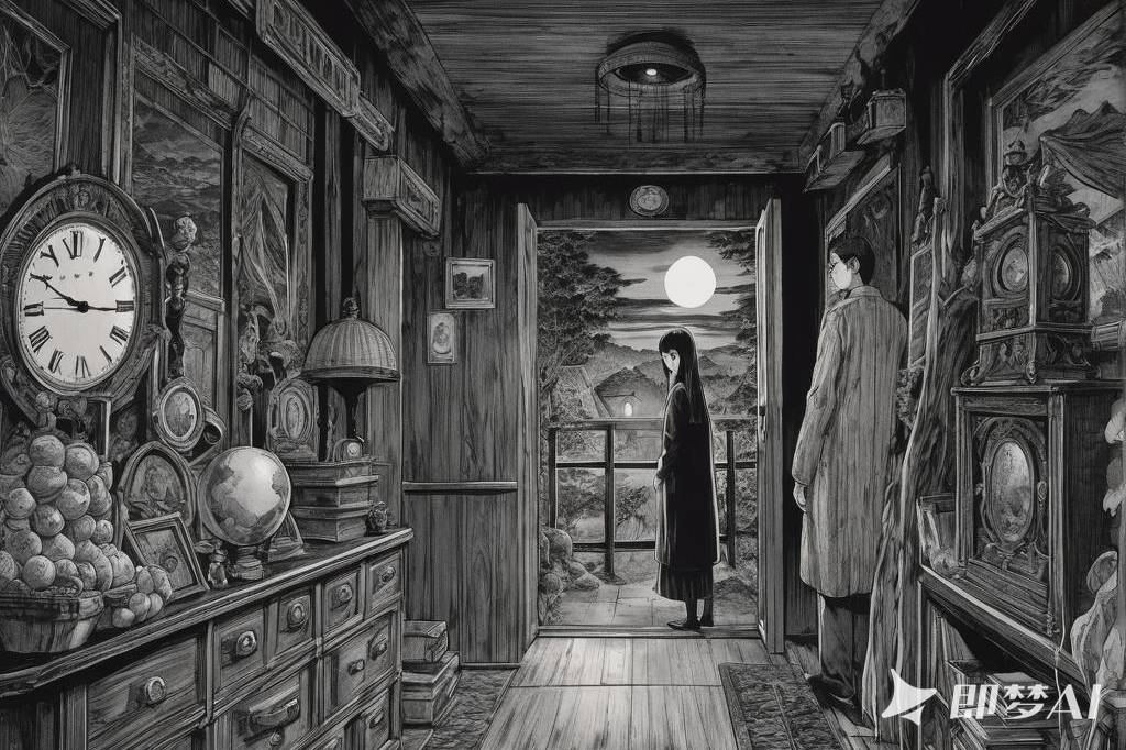 神秘、荒诞、恐怖氛围,包含惊悚、诡异元素,阴郁美学,毛骨悚然,阴森,超现实,不可名状,并借鉴伊藤润二风格与哥特式风格,细节丰富(26)