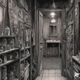 神秘、荒诞、恐怖氛围,包含惊悚、诡异元素,阴郁美学,毛骨悚然,阴森,超现实,不可名状,并借鉴伊藤润二风格与哥特式风格,细节丰富(69)