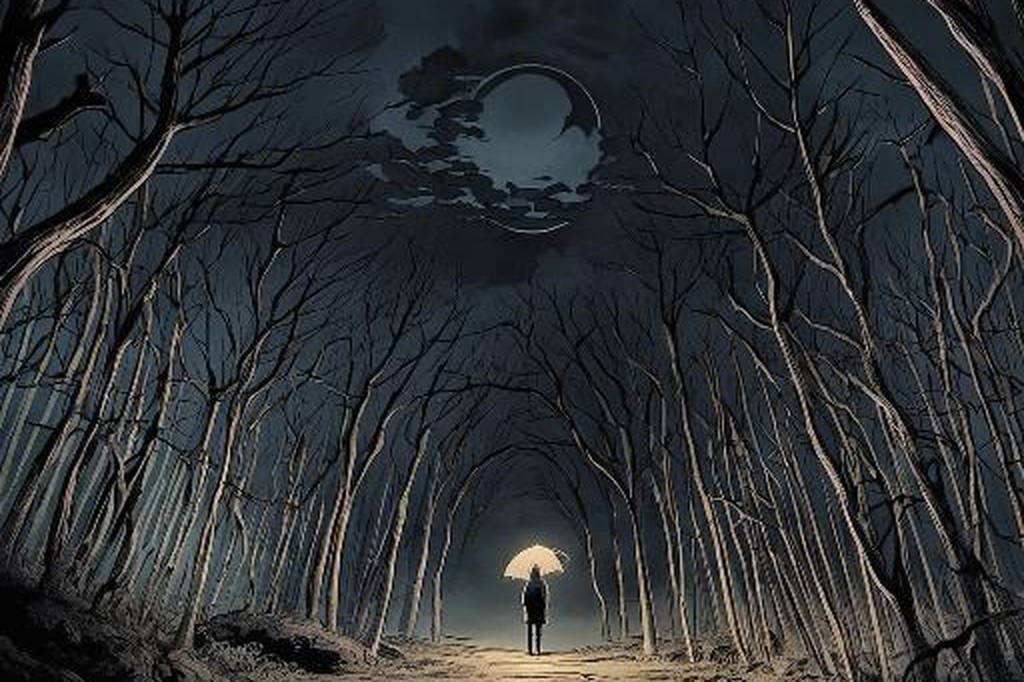 阴森背景,神秘,荒诞,恐怖氛围,惊悚,诡异,伊藤润二风格,哥特式风格(46)